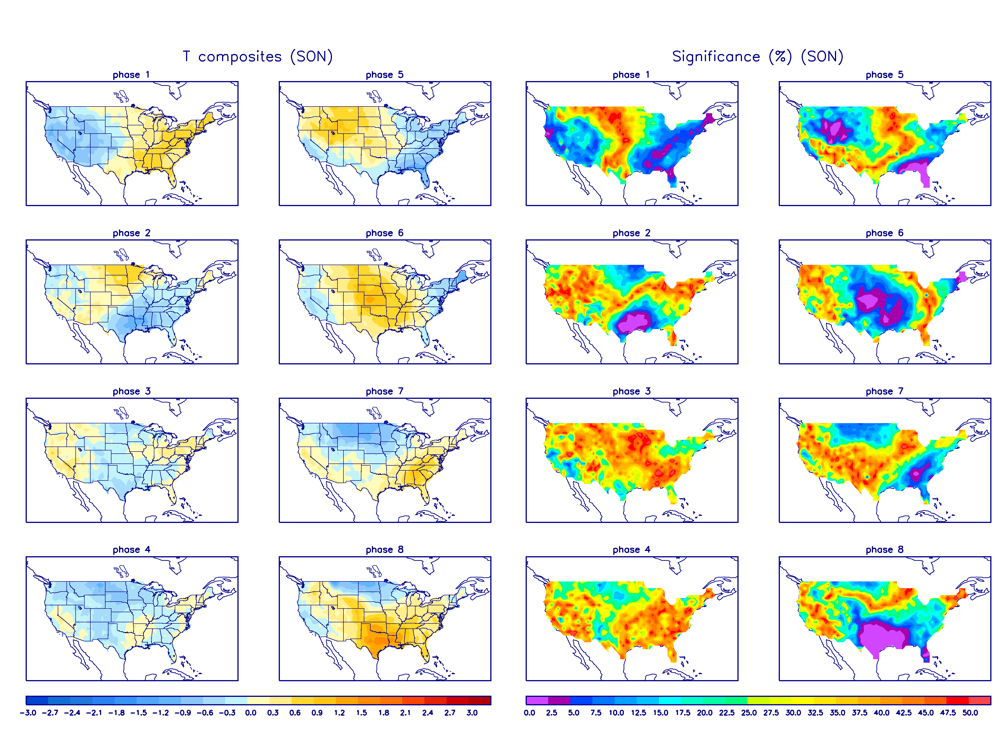 For now, I think the safe bet is milder than normal for our area through the next 2-3 weeks with occasional shots of below normal air, but they will be transient in nature. Below are the temp composites for each MJO phase. Notice phase 1 for this time of year is warm (top left), with significant cooling in phase 2 (1st image in 2nd row). So if we can get into phase 2 by the end of October / beginning of November, we might have a stronger cold shot.