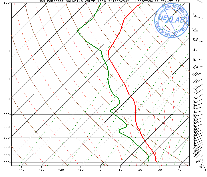 The 00z NAM’s forecast sounding valid for 2 p.m. in SE PA shows a very conducive environment for tornadoes.