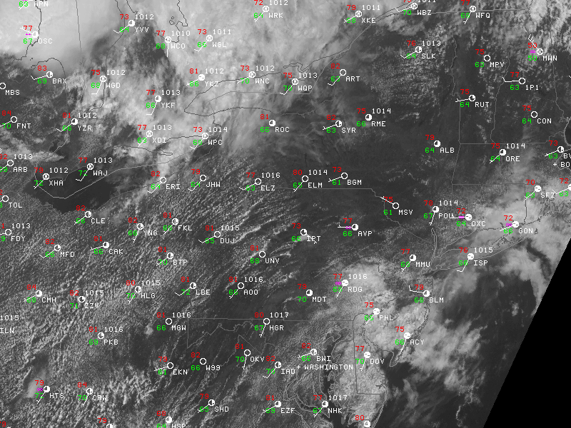 Visible satellite imagery and regional observations from the afternoon of August 30th, 2013.