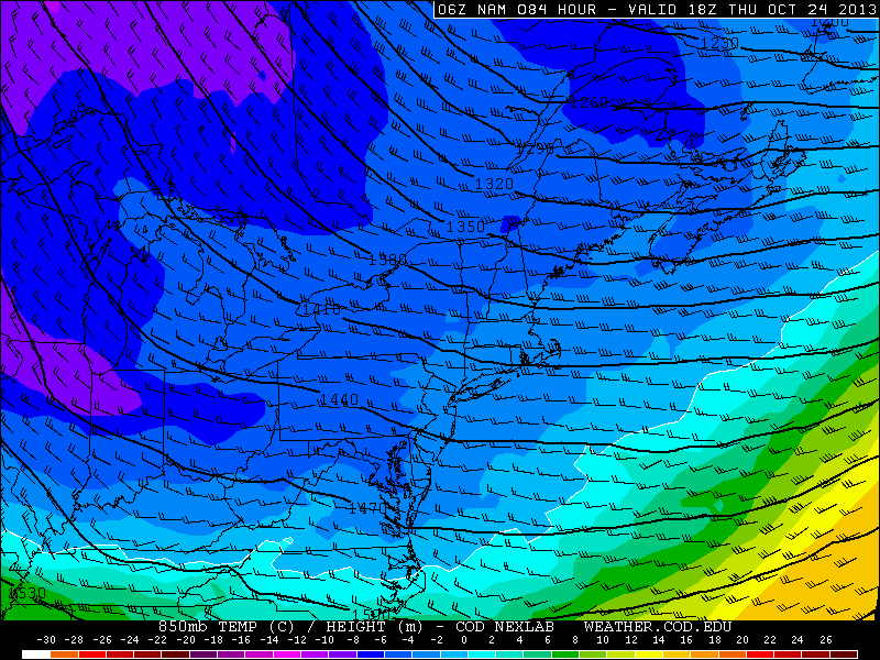 NAM showing 850mb temperatures falling between -4 and -6 C through the Northeast later this week.