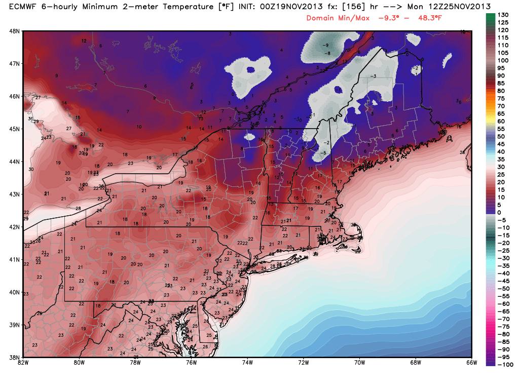 Although the air currently feels plenty cold, especially in comparison with what we had the pleasure of experiencing this past weekend, the real arctic assault is still looming and probably won’t fully be felt until this weekend. Forecast models are in good agreement that a storm system will shift northeastward, whether it be through the Great Lakes or just off the coast of Southern New England, and then into Eastern Canada. The exact track of this storm will make a difference in terms of snowfall potential for Northern New England, but as far as we are concerned — either one will bring the arctic hammer down by Sunday throughout the Northeast US. We’re expecting a chance of showers on Saturday in association with the disturbance which will drag the big-time cold front through the area.