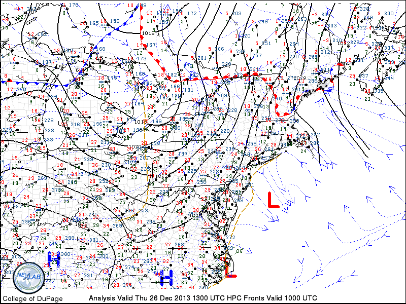 Colder, but more tranquil weather has settled into the forecast area to end the holiday week. After some light snow showers associated with a weak front and coastal system on Thursday, pleasant weather is expected on Friday and Saturday. Additionally, there will even be a bit of a warming trend both days, as high temperatures reach into the 40’s. The arctic air which stepped into the area earlier in the week won’t have any reinforcement until early next week, and so airmass modification will allow for temperatures to push warmer on both Friday and Saturday especially as the surface high pressure slips off the East Coast.