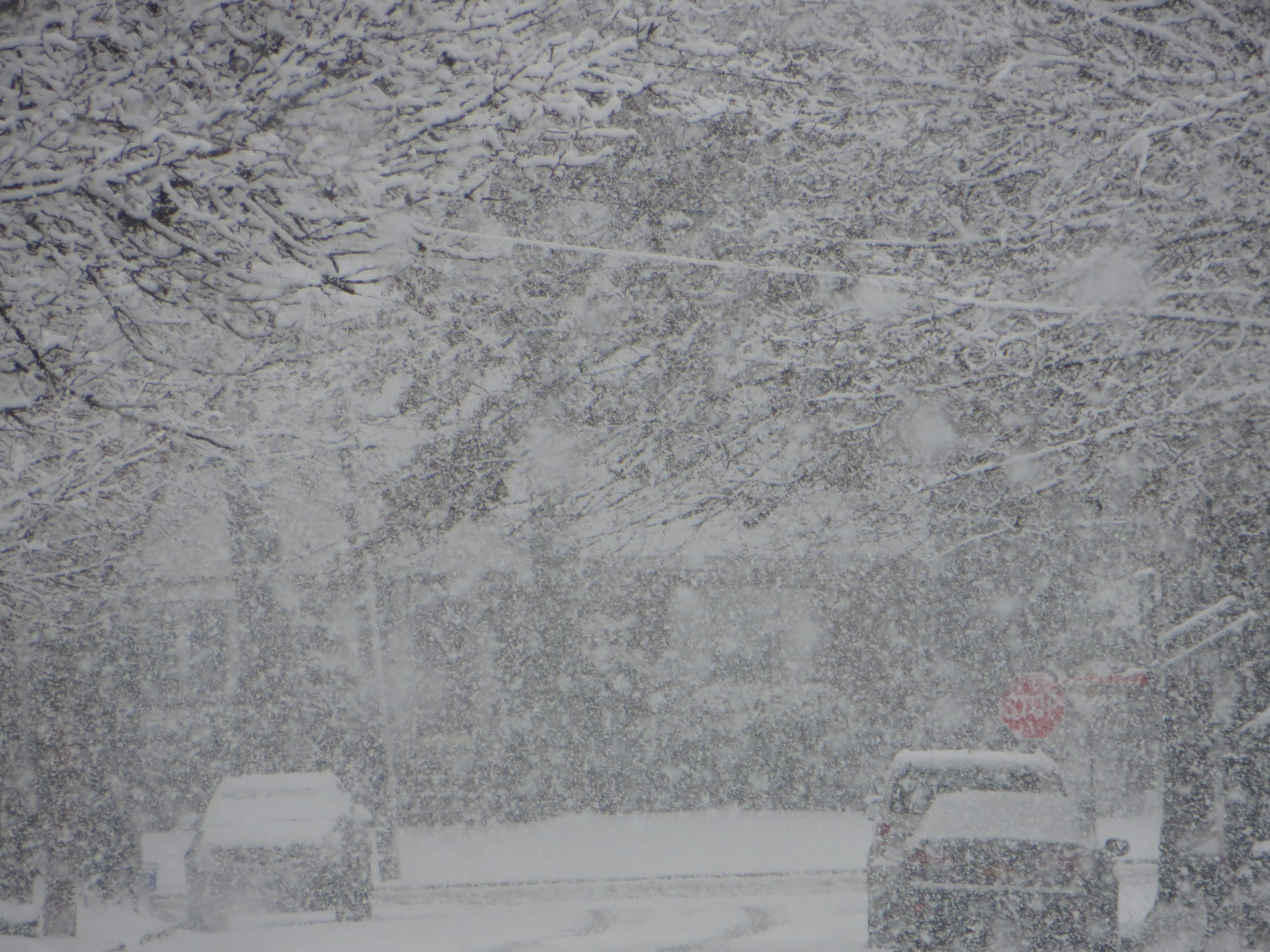 A photo taken by Doug Simonian during the heavy snow burst at 10:30am in Rockville Centre, NY.