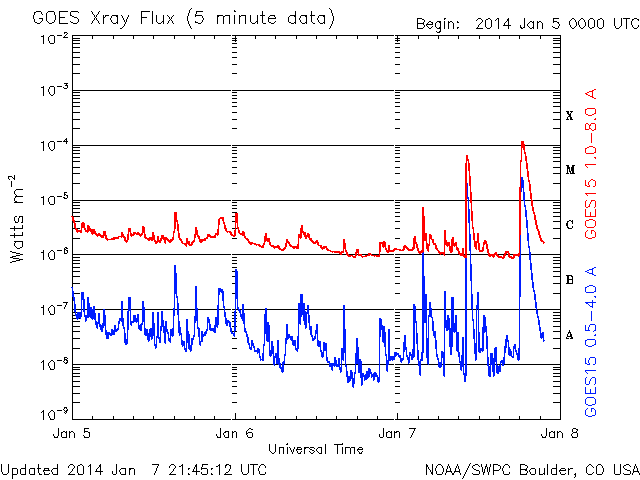 Data showing the X-Class solar flare on Tuesday afternoon.
