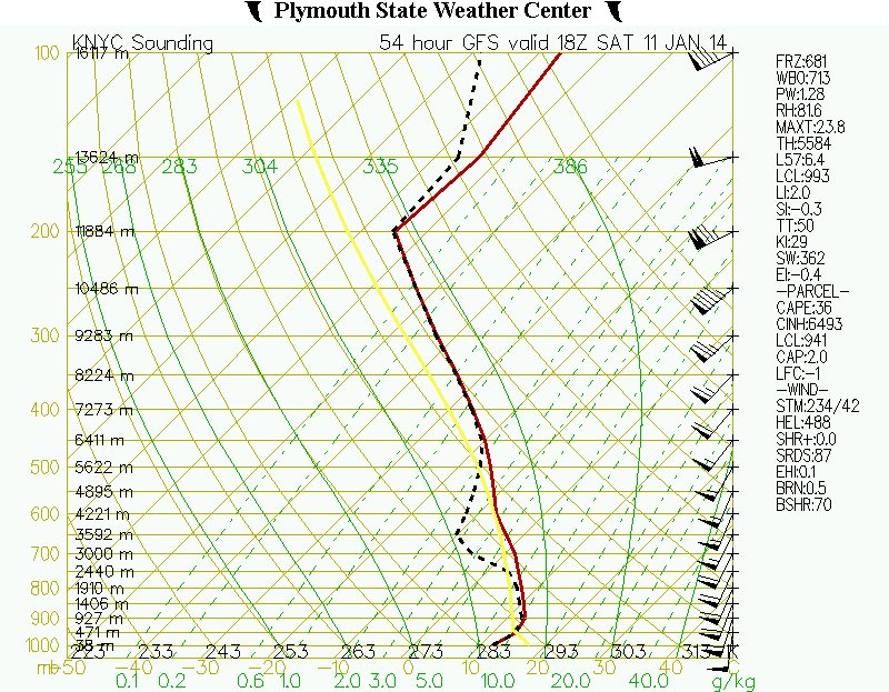 Forecast model soundings for New York City on the GFS model paint an interesting scenario: