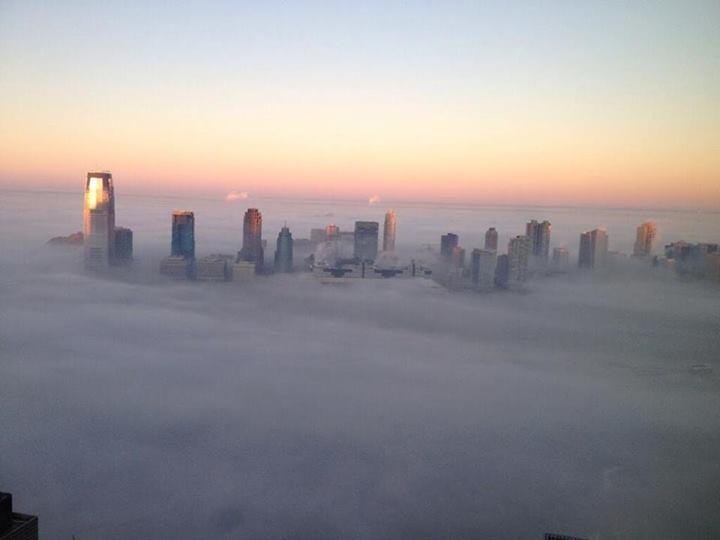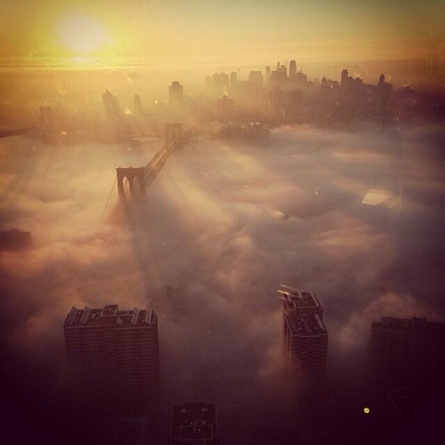 Often misunderstood, fog forms as water vapor condenses into tiny water droplets in the lower levels of the atmosphere. Fog is not water vapor itself (Water vapor cannot be seen), nor is it “smog”, a variation of the word which is used to describe lowered visibilities that occur as a result of pollution. But this morning was a more classic case of low fog, more typical in London or San Francisco. The occurrence was a terrific photo opportunity for some of New York City’s best photographers (and webcams). We’ve included some of the best shots below.