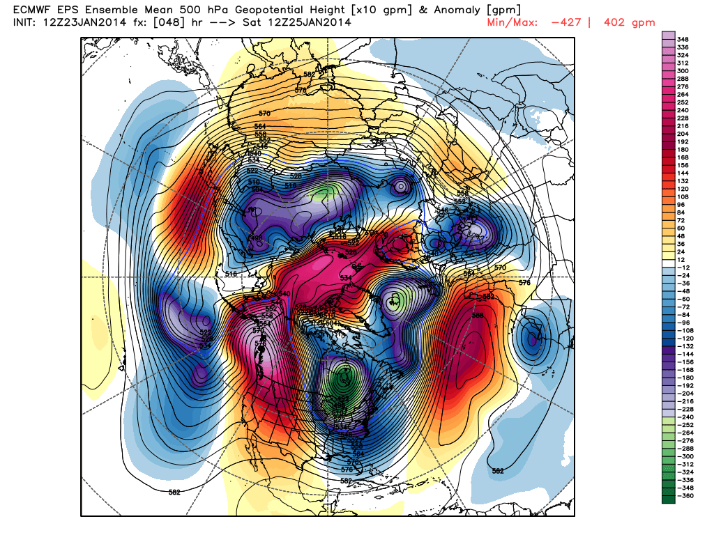 Old man winter has returned in a big way over the past week, complete with severe cold, bitter wind chills, and significant snow across much of the Northeastern US. Our brief January thaw has transitioned into a highly amplified, meridional pattern, as the EPO continues strongly negative. This north Pacific / Alaskan block has been a mainstay of winter 2013-14, and if one examines the SSTA profile in the Pacific, ocean temperature anomalies persist well above normal south of Alaska. Thus, the signaling remains for a positive feedback cycle of building the mid level ridge over Alaska, and maintaining the cross polar flow from Siberia/Arctic into Canada.
