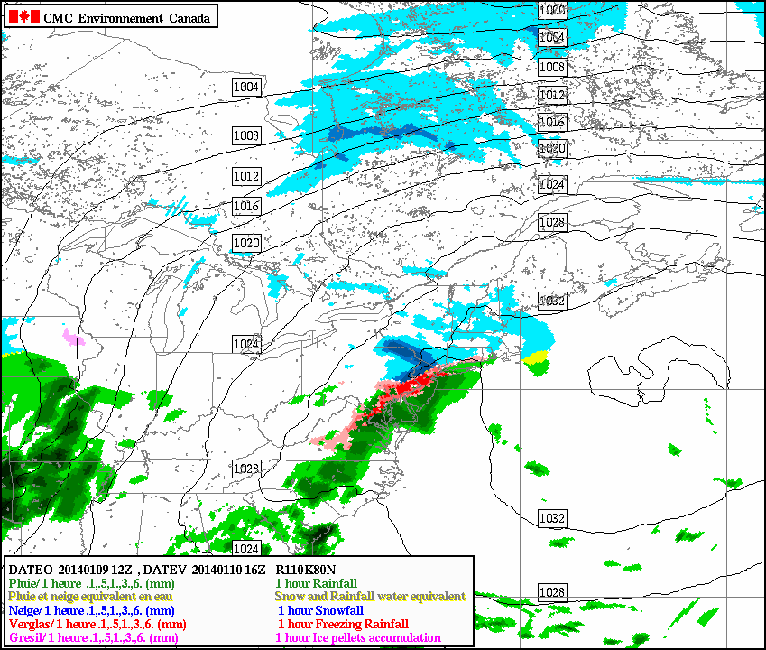 However, a freezing rain advisory still exists for interior Central and Northern NJ, interior southern NY, and interior southern CT, as cold air has still remained at the surface. Areas close to NYC should change over to plain rain by midnight with less than a tenth of an inch of ice, and areas a bit further inland may remain below freezing until 4:00am, as a tenth of an inch of freezing rain could fall. Travel especially carefully in these areas. For more information on these advisories, see the embedded links.