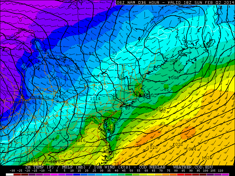 Given the nature and degree of the cold snaps so far this winter season, it seems like every warm up deserves a lot of attention. There have only been a few this year (most notably one in December and one in mid January) — and another is on the way this weekend. Conveniently timed during the Super Bowl festivities in New York City, a low pressure system will ride to the north of our area on Sunday providing a warm southerly fetch out ahead of it. The bulk of precipitation associated with the storm looks likely to stay north of our area as well, with just a few showers possible on Sunday. There is also some potential for a period of steady rain early Sunday morning across Southern New Jersey.