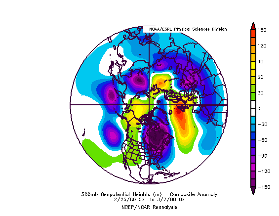 2. Negative EPO / Positive PNA induced arctic outbreak arrives by early week, with temperatures much colder than normal for the last 3-4 days of February.