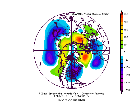 A couple of strong analogs for the upcoming 10-15 day period are Feb 25-March 10th of both 1980 and 1984. These years featured a similar, anomalous EPO/PNA pattern with the downstream powerful troughing in the Eastern US.