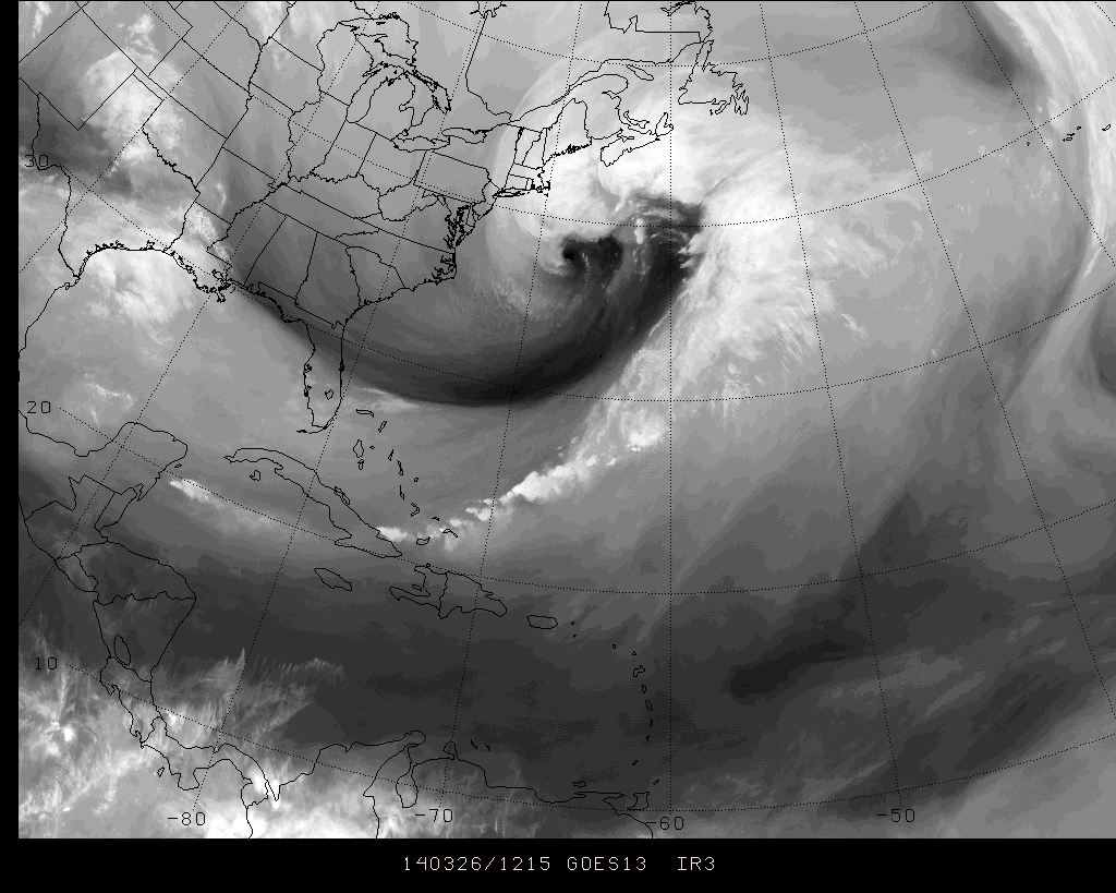 What is happening here is we are seeing the effects of Atlantic blocking and what it could do to east coast storms. Throughout this winter, we have been in a relatively zonal flow due to a constant +NAO with only a north-Atlantic ridge trying to help slow the flow down.