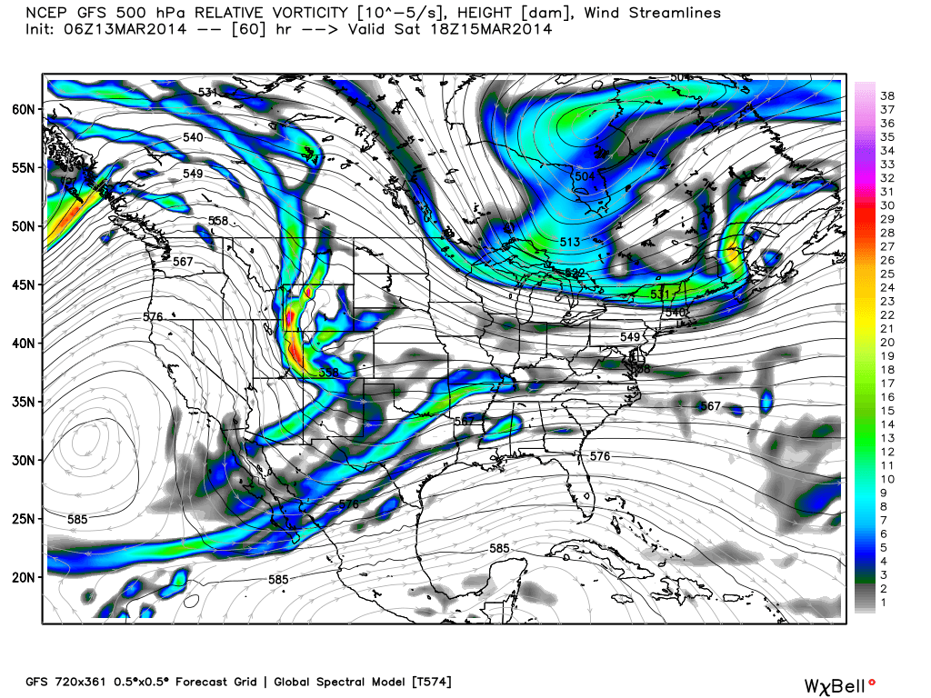 Much of the forecast, however, hinges on the exact positioning and strength of the disturbance as it ejects northeastward from the Southwest US towards the Mid Atlantic. And not surprisingly, forecast models are up in arms as to exactly how consolidated the system will be as it does so. The Canadian, SREF and DGEX extension models all like the idea of the system ejecting as one consolidated trough with significant moisture, while the Euro and GFS are adamant in the idea that the system will be faster and split into multiple pieces.