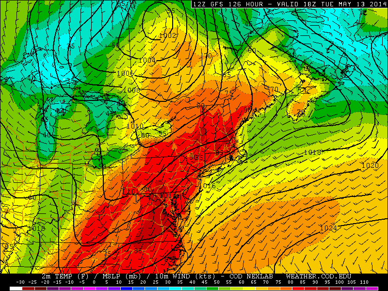 The front will eventually push toward the area during the middle part of next week — and we already have seen hints of potential strong thunderstorms with its passage — but not before two days (or potentially more) of late spring/summer like weather. Exact high temperatures are difficult to pin down at this point, but the general idea is that we’re looking at the warmest days of the year to date by early next week.