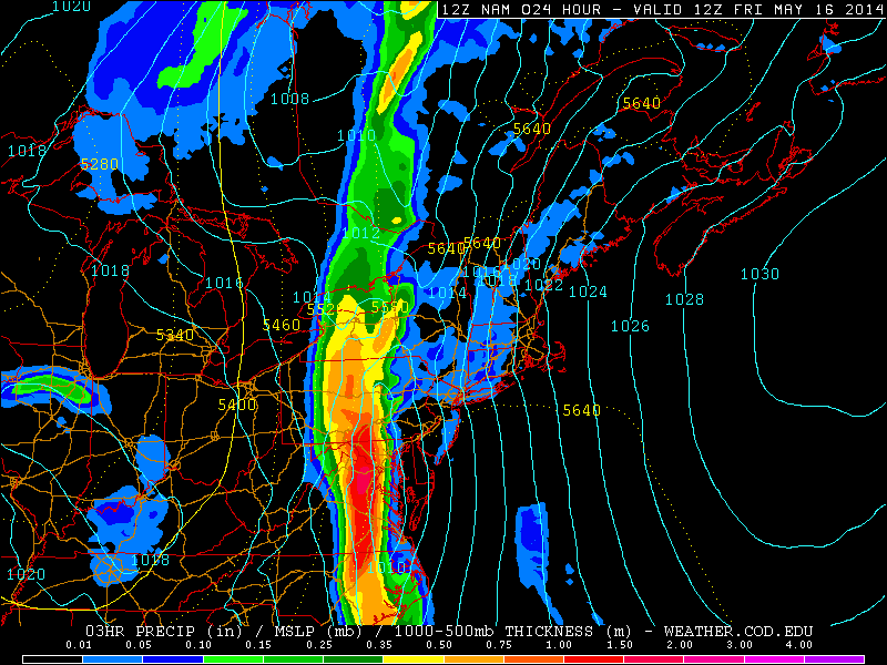 Today’s 12z NAM valid for Friday morning shows plenty of heavy rain to our west, but not much in the way of activity for our area (weather.cod.edu).