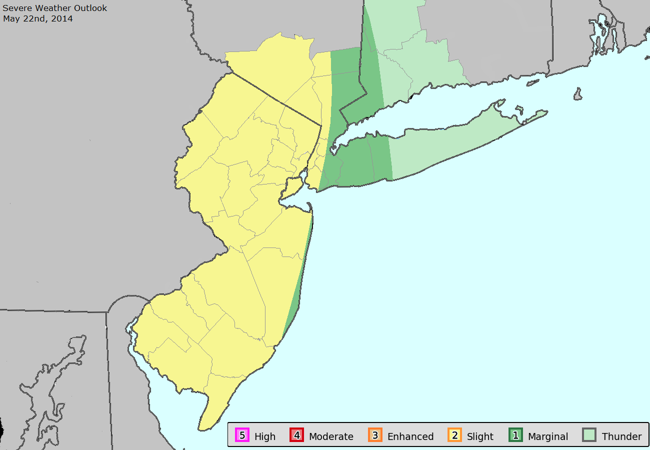 The threat for strong to severe thunderstorms is likely to be focused west of the area beaches and shores, but heavy downpours and thunderstorms are still possible there. Farther west, over the interior parts of New Jersey and New York, more focused instability and southerly winds are more likely to work with marginally favorable wind fields to help develop thunderstorms. These storms will be capable of producing very heavy rain, frequent lightning and possibly even some small hail and gusty winds.