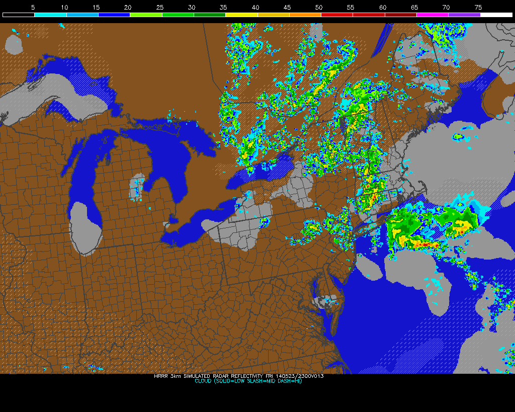 Later Friday Night, showers and storms will begin to shift eastward as the perturbation rotating around the aforementioned upper level low shifts eastward as well. The associated clouds should make it east toward Long Island eventually during the overnight period into Saturday morning (important for the Camelopardid meteor shower).