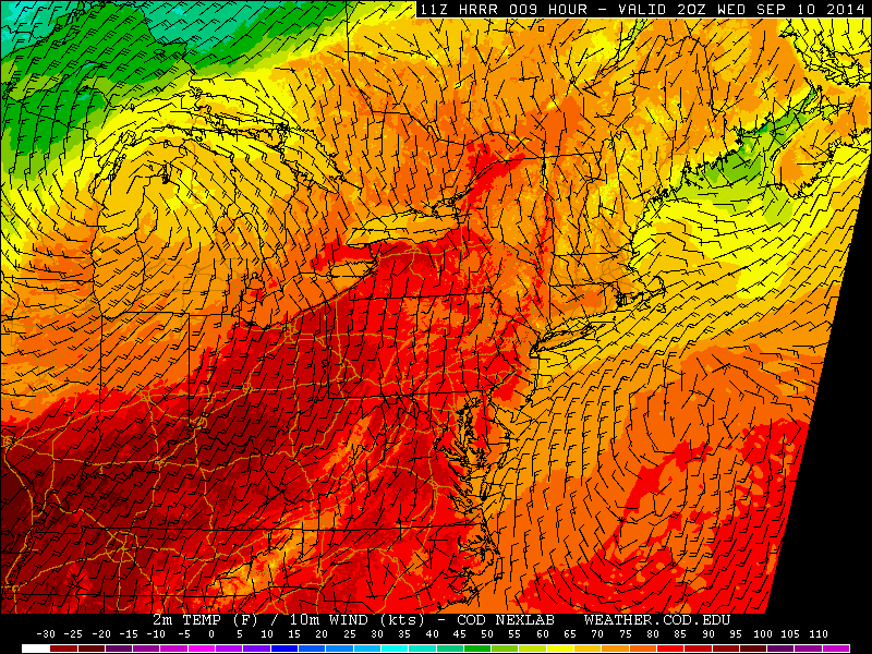 Along with the cold front will come a risk for strong to severe thunderstorms (more on that in a post this afternoon), some of which could produce dangerous lightning and heavy rain as well as a few gusts of strong wind. But behind the front, a major temperature drop is expected — and autumnal air will return to the forecast.