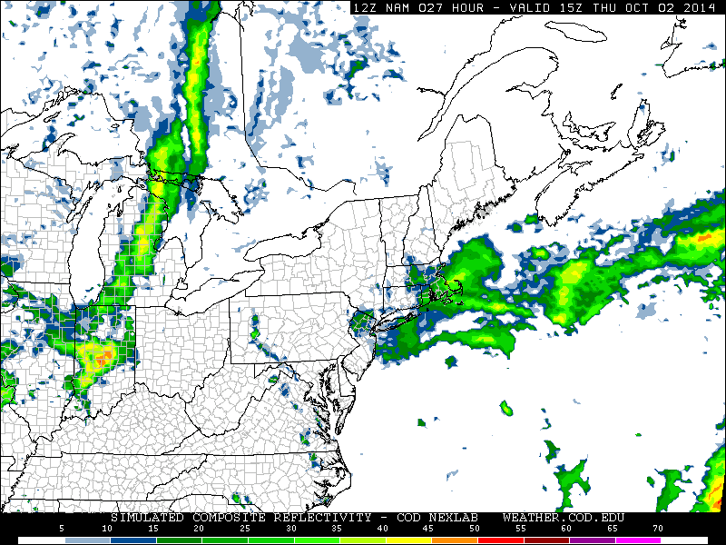 A weak low pressure system off the coast is bringing enhanced rainfall to parts of Southern New England, Eastern Long Island and Connecticut tonight. The best forcing and lift for rain will remain to the east of the areas, but periods of more steady rain and showers are possible through tonight and into Thursday. Tonight, as a result, will remain quite cool and damp. We suggest bringing a jacket if you’re headed out. You may want to carry an umbrella along, too, just to be safe.