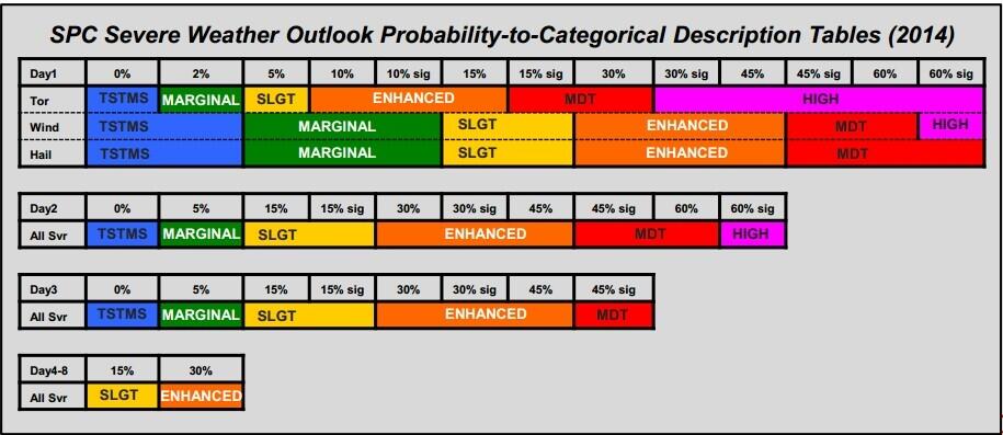 In general, these changes seem to positively favor the interpretation of the Storm Prediction Center’s outlooks. Initially, however, there may be some confusion as to what exactly the new categories mean for severe weather chances in any given area.
