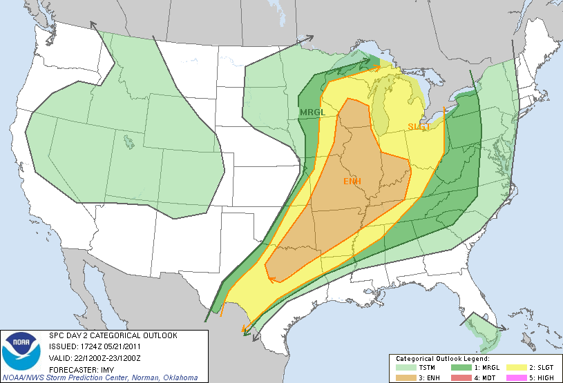 The Storm Prediction Center has provided a link with images and comparisions between the new outlooks, coming Wednesday, and the old outlook graphics and format. You can view it here.