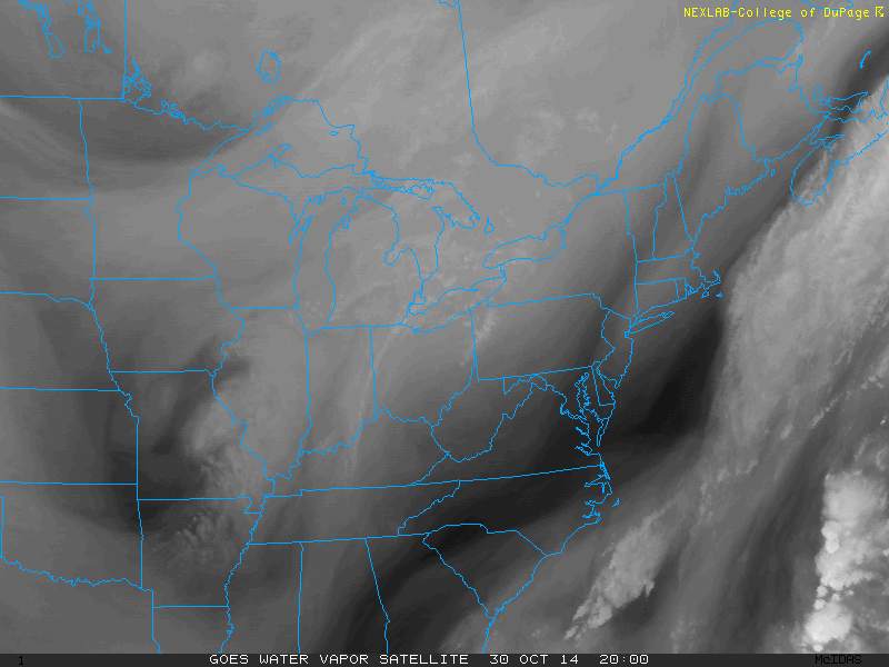 Evolution of this weekends storm in the mid levels of the atmosphere. Notice the energetic disturbance surging southward from Canada.