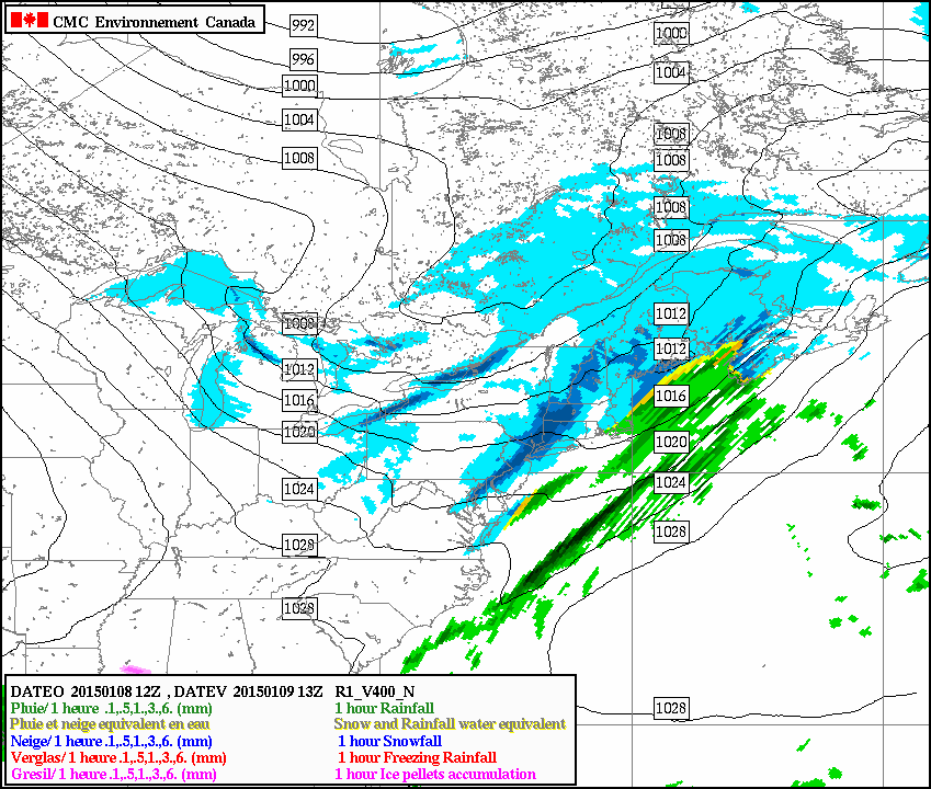 Some data, including the Canadian model shown above, shows another area of high pressure developing to our north as moisture from the south streams from southwest to northeast, towards our area. The details still need to be ironed out, but the potential for snow, sleet, freezing rain, and plain rain, or a combination of all of those are possible on Monday. Light to moderate accumulations are possible.