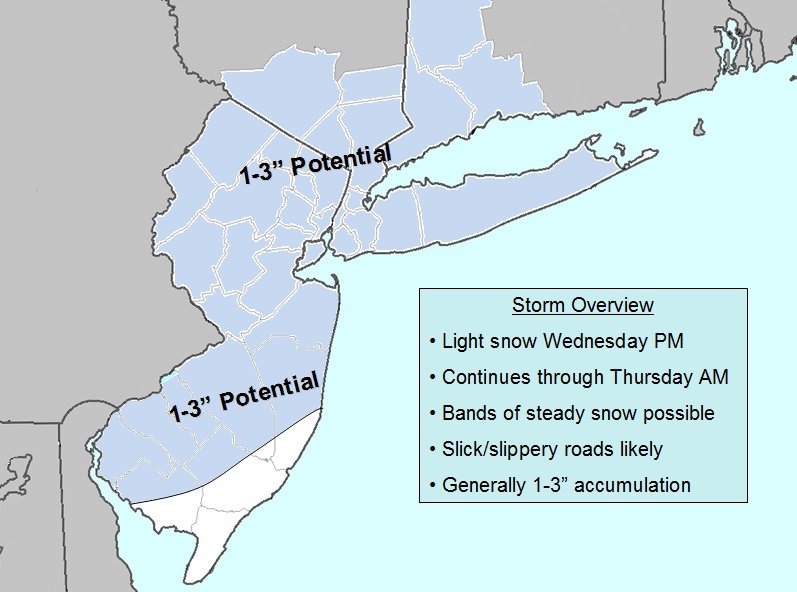 Snow is expected to begin as early as Wednesday afternoon, spreading throughout the area from southwest to northeast. As it does so, roads will become slick and slippery. While the PM commute on Wednesday isn’t exactly expected to be a nightmare, overnight travel could be quite slow and the evening commute could be slower than usual if snow is falling. The overnight period from Wednesday into Thursday morning is expected to feature snow throughout the area.