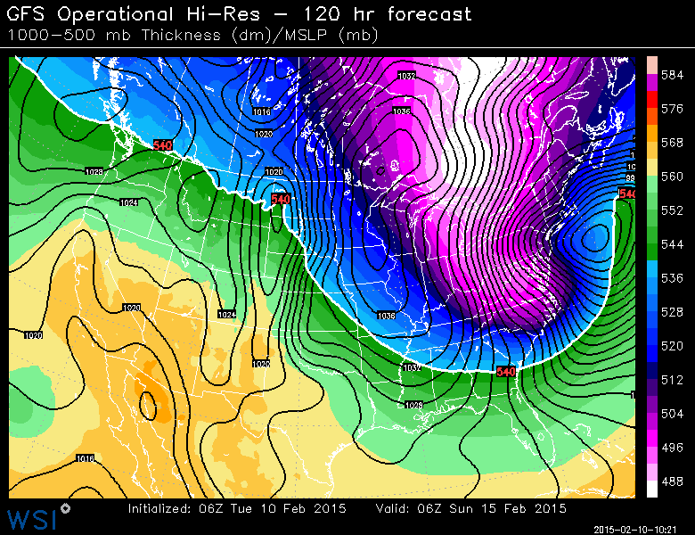 But the storm systems aren’t done yet — the pattern will remain active. And by Sunday, an arctic upper level low will drop southward from the Great Lakes through the Northeast States. Forecast models indicate a high amplitude pattern and another chance for a developing coastal storm. With extremely cold temperatures aloft and at the surface, a very cold snowfall would be possible. The exact track of the storm system will obviously have huge impacts on precipitation types and amounts.