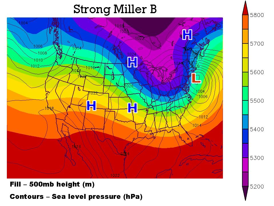 Historically, Miller B events have favored New England. There are differences in every setup, obviously, but much of this has to do with the fact that naturally, New England extends farther to the east than our area. As a result, the Miller B redeveloping storm can mature into a well developed cyclone by the time it nears there area. January 22, 2005 is a prime example of a Miller B system (albeit a very different setup than this one).