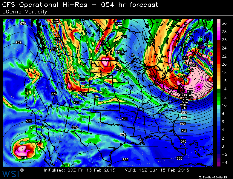 Forecast models have come into much better agreement on the eventual track and intensity of a powerful storm system, which will develop from the Great Lakes off the Northeast Coast on Sunday. The track of the storm is quite unusual, with the surface low tracking from Southeast Canada to a position off the New Jersey Coast and eventually into the Gulf of Maine. A powerhouse mid and upper level low will amplify eastward from the Great Lakes, underneath Long Island, and eventually to a position just south and east of Cape Cod, aiding the strengthen an already powerful storm system.