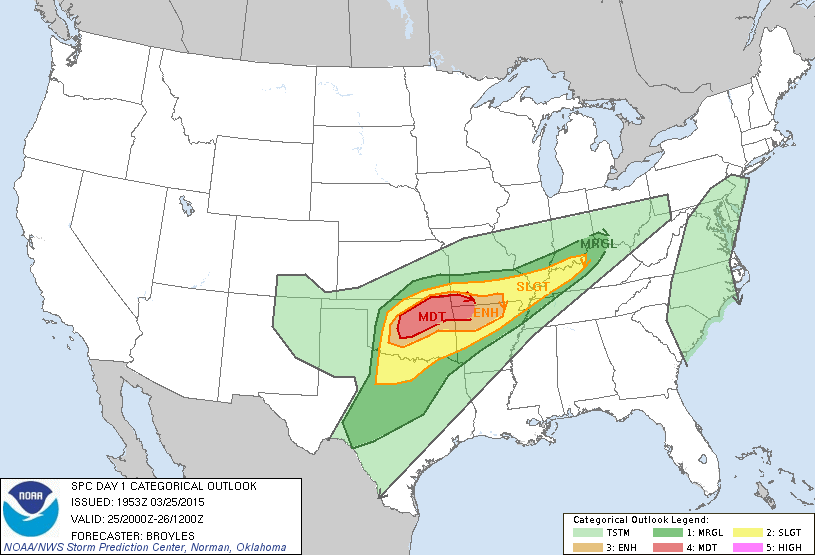 You can access the Storm Prediction Center’s daily outlooks here.