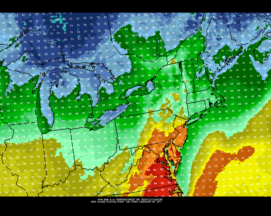 For our area, this signals two things: The end of any potential above average regime, and the likelihood of an increased southerly flow right ahead of the front. The latter of the two will be most important, as east/northeasterly winds will swing around to southerly on Friday. This will help to scour out the backdoor cold front and allow warmer air to surge northward from the Mid Atlantic States into parts of Southern New England. Temperatures will rebound, into the 60’s and potentially 70’s in much of New Jersey.