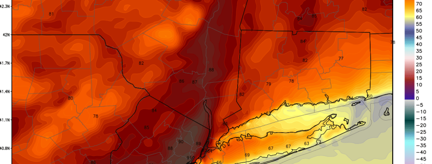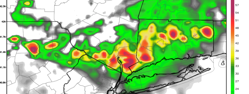 These storms will move toward a narrow axis of instability over New Jersey reaching toward New York City this afternoon. Narrow, only because east of New York City a stout marine layer will remain in place. This will keep storms elevated and weaker — temperatures there will be cooler as well with less instability. Nevertheless, the storms will march eastward through New Jersey toward NYC right around the PM Commute. The main threats with any storms will be gusty winds, lightning, and heavy rain.