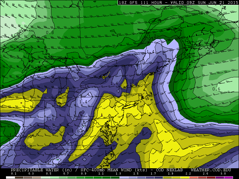 Yet, the progression of TS Bill as currently modeled would likely inhibit the movement of the EML from the Plains States into the Northeast United States. Models, accordingly, have backed off the potential for severe weather and moved more toward the idea that parts of Saturday into Sunday could feature heavy rain with tropical downpours and high humidity.