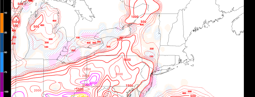 While the storms on Tuesday aren’t expected to be quite as severe as the ones which brought wind damage to the interior Northeast on Monday, they will still have the potential to produce gusty winds, small hail, and heavy rain. Lightning will, of course, also be a threat in any storms that develop. Instability will be a bit less than ideal for widespread storms, but wind shear may help them organize. The Storm Prediction Center has issued a Slight Risk for severe thunderstorms, mainly to the north of NYC into New England.