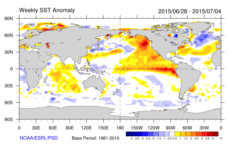 Sea Surface Temperature Anomalies during the past few weeks (ESRL/NOAA).