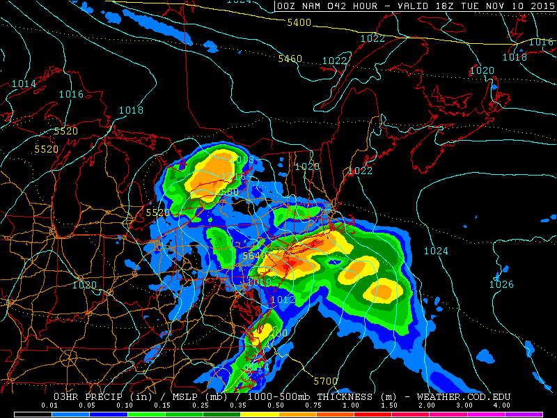 NAM model showing heavy rain on Tuesday morning and afternoon.