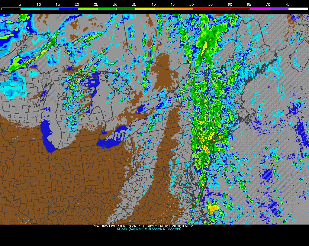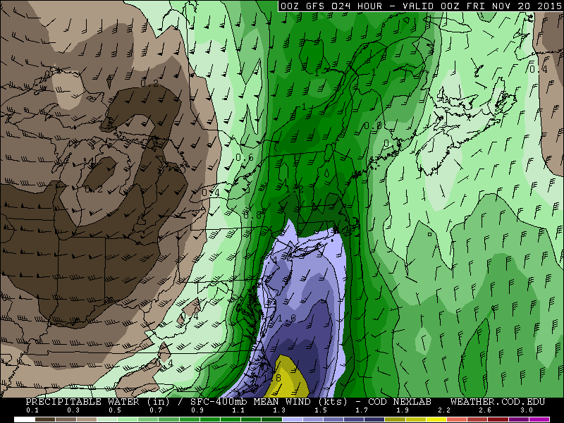 Model guidance shows little instability. But an isolated thunderstorm can’t be ruled out, considering the warm air advection and forced ascent occurring. Rainfall totals of 1″ – 2″ of are possible in parts of the region. The upslope flow with southeast winds could help enhance rainfall totals over higher elevations north and west of New York City as well. The stronger winds aloft are not expected to mix down to the surface; however, with a tightening pressure gradient, winds could gust in excess of 30mph in spots — especially near the shore or with any isolated thunderstorm.