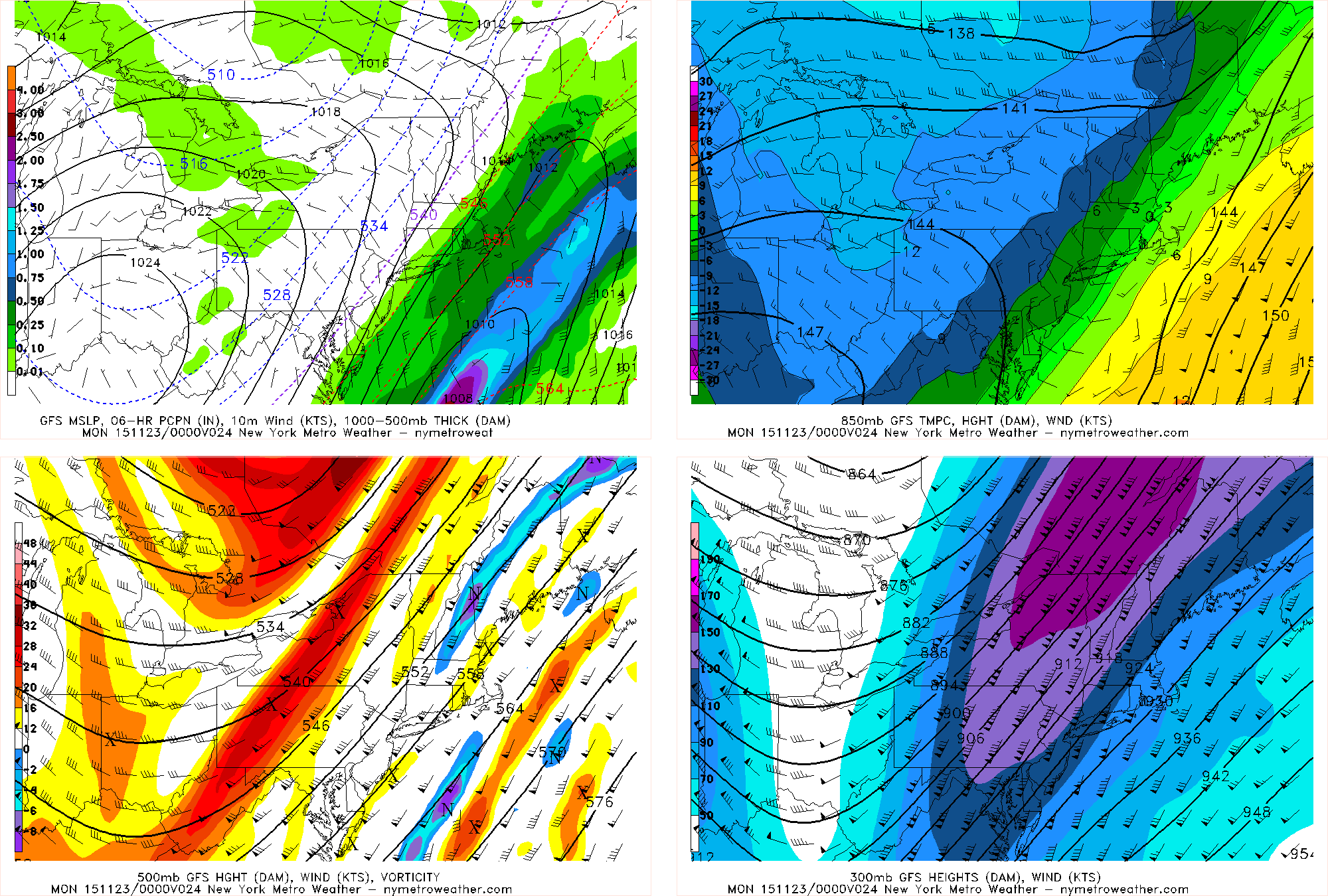 The GFS showing rain southeast of NYC this afternoon , underneath the right-rear entrance region 130kt+ 300mb jet streak
