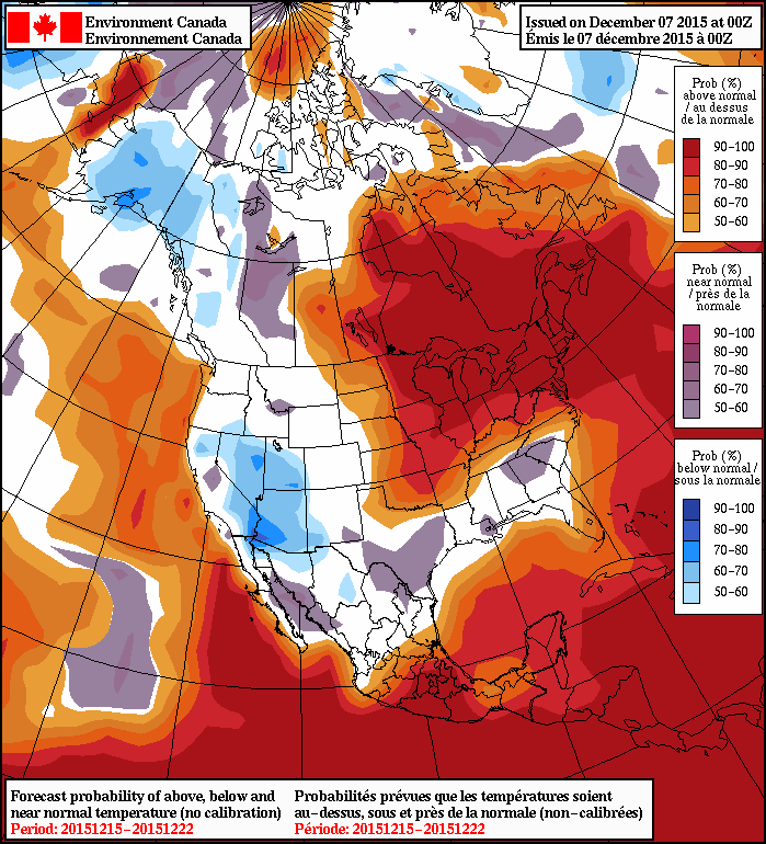 The Moving 30-Day SOI value (which changes daily) as of December 6 is -6.98. Which is considered to be neutral territory for ENSO. But that value been dropping in past week. The Moving 90-Day SOI value-15.24 as of December 6 are still well in El Nino territory. This index indicates how much influence El nino has on the atmospheric pattern over the Pacific. But there is no relationship between when a transition to a colder or warmer pattern over North America will occur.