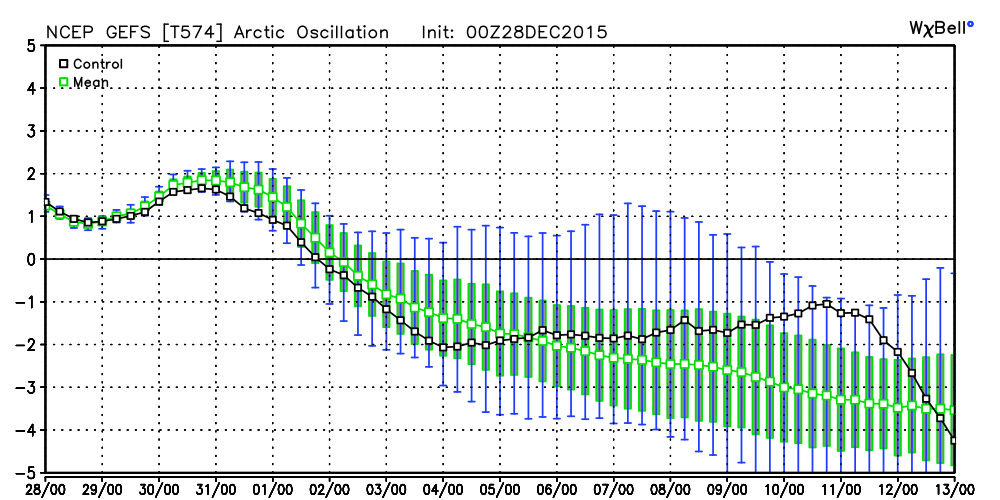 All of these atmospheric changes add up to changing teleconnections — which essentially give us a numeric value or modality behind the conditions of the atmosphere. The Arctic Oscillation, for one, will take a nosedive over the next several days. Consistently positive so far this year, a modality that favors warmer than normal conditions here based on a lack of blocking in the higher latitudes, forecast models are in tremendous agreement that the AO will fall to significantly negative over the next two weeks.