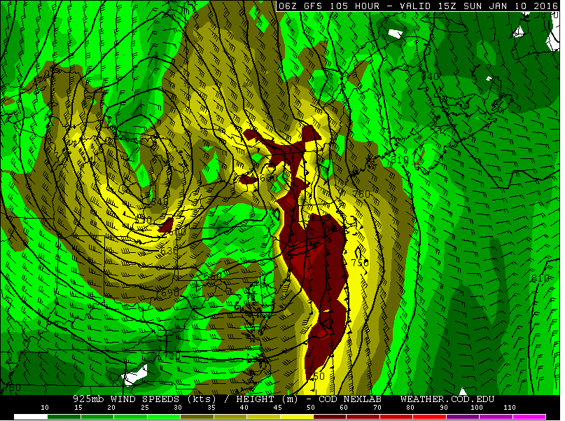 The GFS showing 925mb winds over 50kt-70kts Sunday morning over NYC metro region. Surface wind gusts to 40mph mostly likely near the shore. Some of these wind could be brought down to surface with any thunderstorms