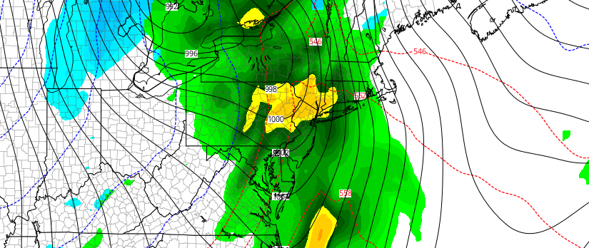 This storm will push a warm front and cold front through the region on late Saturday night and Sunday, with enhanced lift for precipitation. This rain could become heavy at times on late Saturday night and Sunday morning. Lift and moisture increase with a southerly low-level jet at over 50kts and precipitable water values over 1.00″. Models show little instability, but an isolated thunderstorm with very heavy downpours can’t be ruled out. Rainfall totals between 1″ – 2″ are possible for parts of the region. This could cause some localized flooding in low-lying or poor drainage areas.