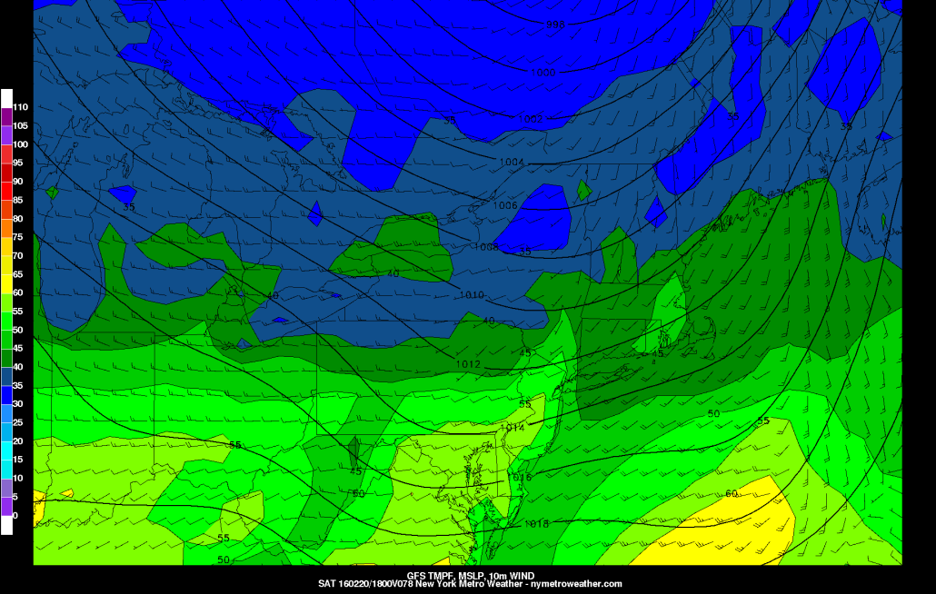 Tomorrow night looks quite chilly, as the due northerly flow takes over, which is the most efficient way to draw in cold air at the surface. Low temperatures look to be in the upper teens.