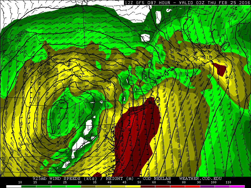 The winds at 925mb will unlikely be able fully mix down to the surface, due to a low-level inversion shown on model soundings. But there will be some strong southeast winds—particularly near the shore. These winds also bring a threat for some coastal flooding during high tides with the full moon cycle this week. The models are also showing a 500mb southerly jet streak at 100kt+ moving over the region and some elevated instability that could support a convective squall line moving across the region. As we saw last Tuesday, this line could help bring down more of the stronger winds from aloft. We will keep a close eye on this potential this week.