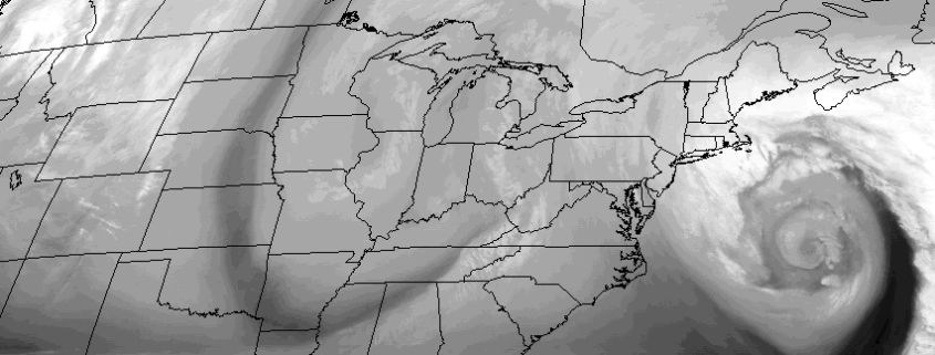 A powerful coastal storm will shift east/northeast this afternoon, toward the Northwestern Atlantic Ocean, with lingering impacts expected in our area. This will be especially true for coastal sections of Eastern Long Island, where bands of snow may linger until the evening hours of Monday as the coastal low pulls away. Elsewhere, relatively benign weather will take over with gusty winds in the wake of the storm system — but no further accumulating snow.