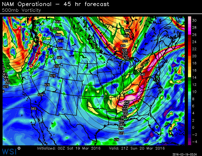 A few days ago we highlighted the main players in the storm systems evolution. As of tonight, forecast models continue to fine tune the exact evolution of these features. Most interestingly, a lead disturbance ahead of the main storm system is now expected aid it de-amplifying the mid level height field. In simple terms, this will help to suppress the main coastal storm farther to the southeast.