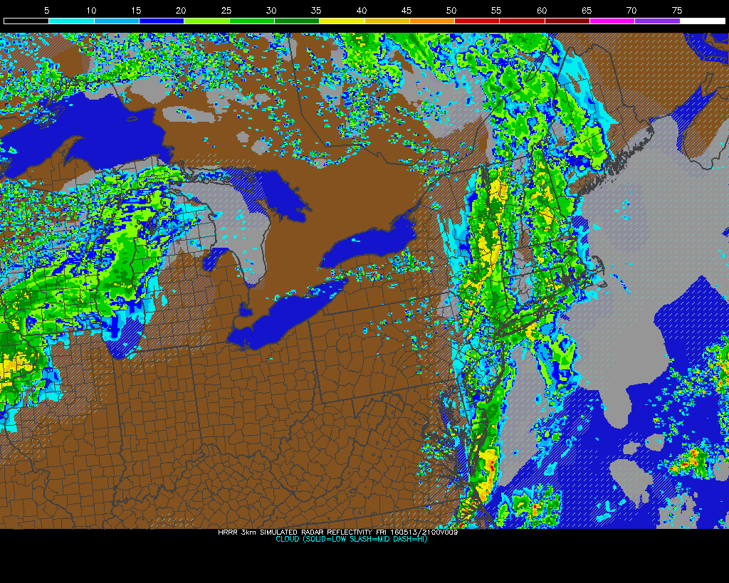 The 12z/13 NAM model showing line of showers of thunderstorm late tomorrow afternoon approaching the region.