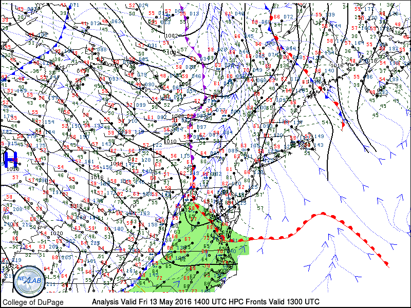 After a little sunshine to start early this morning, it has turned more dreary and dismal. A warm front south of region, has more clouds to increase and thicken over the area with few scattered showers and drizzle. An occluded frontal boundary will move through region later today, with more showers increasing in coverage this afternoon. Skies will remain mostly cloudy with south to southeast winds, ahead of this boundary and keep temperatures mostly the in the 60s this afternoon.